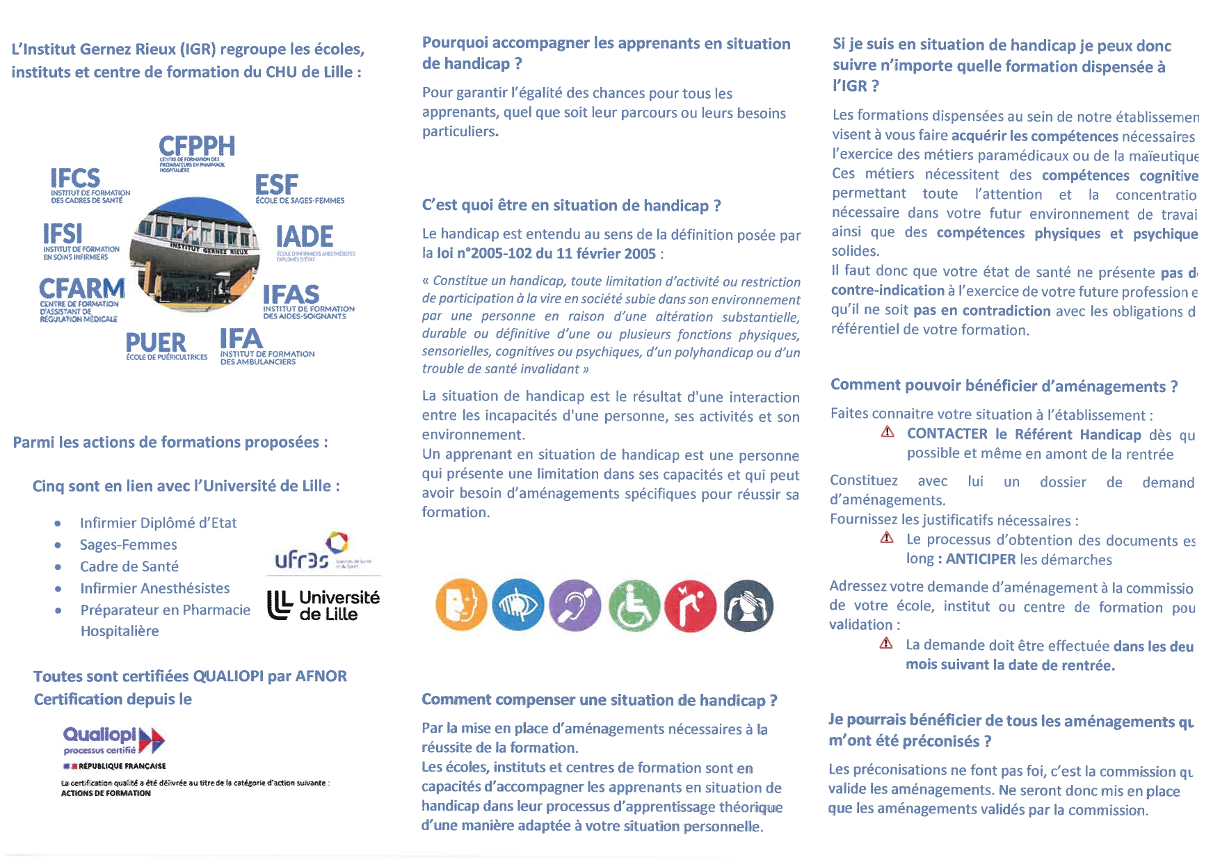 Consulter le livret d’accueil pour les personnes en situation de handicap souhaitant intégrer le centre de formation.